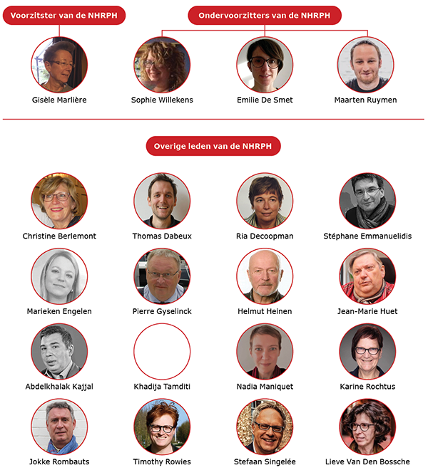 Op 15/02/2021 trad het koninklijk besluit tot benoeming van de leden van de NHRPH voor het mandaat 2021-2027 (KB van 01/02/2021) in werking. De huidige 20 leden van de NHRPH zijn: